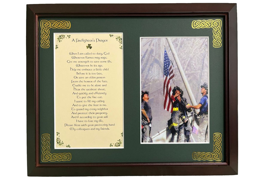 Features - Our blessings are printed on ivory card, and are presented in a forest green matting with gold Celtic knots embossed on the corners. Set behind glass and displayed in a elegant dark walnut frame of Italian design. The backing has a hanger and an attached easel to allow for both wall and table top display. The opening holds a 4x6 photo. Each frame comes individually boxed in a bubble wrap sleeve.