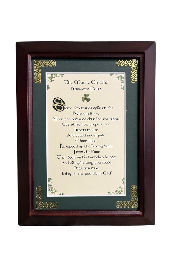 Features - Our blessings are printed on an ivory card, and are presented in a forest green matting with gold Celtic knots, embossed on the corners. Set behind glass and displayed in an elegant dark walnut frame of Italian design. The backing has a hanger and an attached easel to allow for both wall and tabletop display. Each frame comes individually boxed in a bubble wrap sleeve.