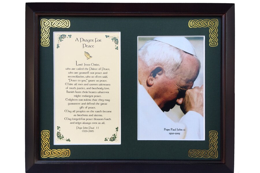 Features - Our blessings are printed on ivory card, and are presented in a forest green matting with gold Celtic knots embossed on the corners. Set behind glass and displayed in a elegant dark walnut frame of Italian design. The backing has a hanger and an attached easel to allow for both wall and table top display. The opening holds a 4x6 photo. Each frame comes individually boxed in a bubble wrap sleeve.