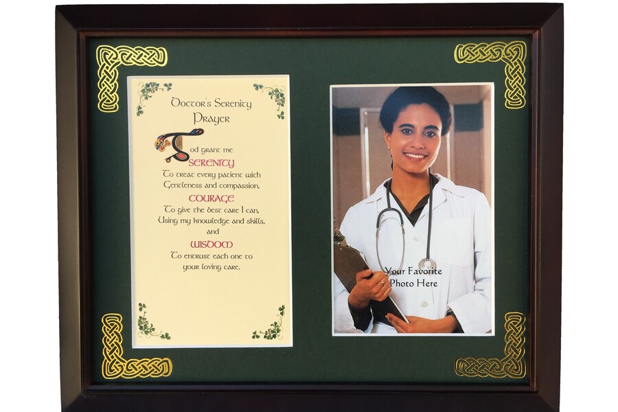Features - Our blessings are printed on ivory card, and are presented in a forest green matting with gold Celtic knots embossed on the corners. Set behind glass and displayed in a elegant dark walnut frame of Italian design. The backing has a hanger and an attached easel to allow for both wall and table top display. The opening holds a 4x6 photo. Each frame comes individually boxed in a bubble wrap sleeve.