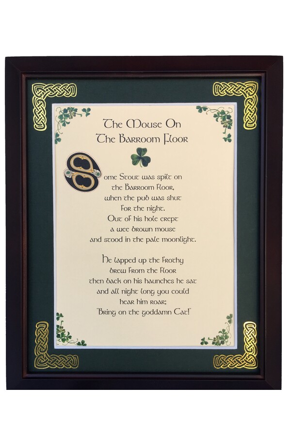 Features - Our blessings are printed on ivory card, and are presented in a forest green matting with gold Celtic knots embossed on the corners. Set behind glass and displayed in a elegant dark walnut frame of Italian design. The backing has a hanger and an attached easel to allow for both wall and tabletop display. Each frame comes individually boxed in a bubble wrap sleeve.