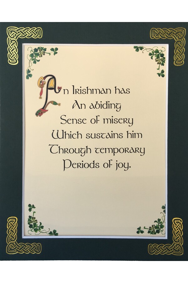 Features - Our blessings are printed on ivory card and are presented in a forest green matting with gold Celtic knots embossed on the corners. Presented in a clear with a craft card backing in a resealable bag.