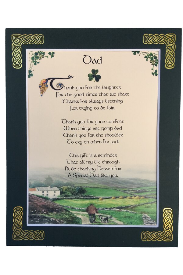 Features - Our blessings are printed on ivory card and are presented in a forest green matting with gold Celtic knots embossed on the corners. Presented in a clear with a craft card backing in a resealable bag.