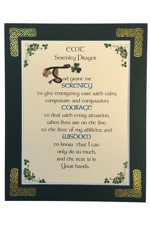 Features - Our blessings are printed on ivory card and are presented in a forest green matting with gold Celtic knots embossed on the corners. Presented in a clear with a craft card backing in a resealable bag.