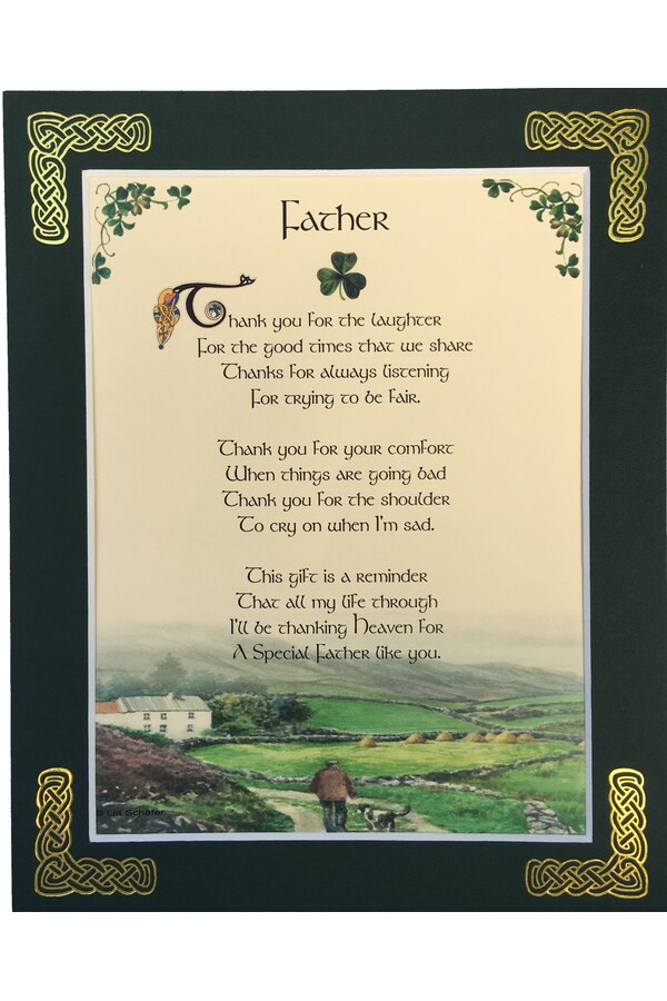Features - Our blessings are printed on ivory card and are presented in a forest green matting with gold Celtic knots embossed on the corners. Presented in a clear with a craft card backing in a resealable bag.