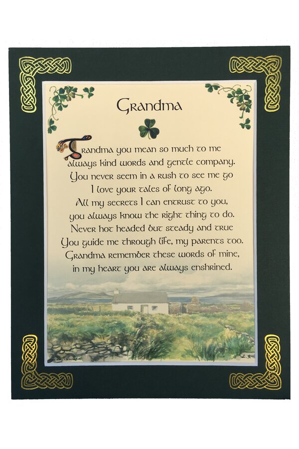 Features - Our blessings are printed on ivory card and are presented in a forest green matting with gold Celtic knots embossed on the corners. Presented in a clear with a craft card backing in a resealable bag.