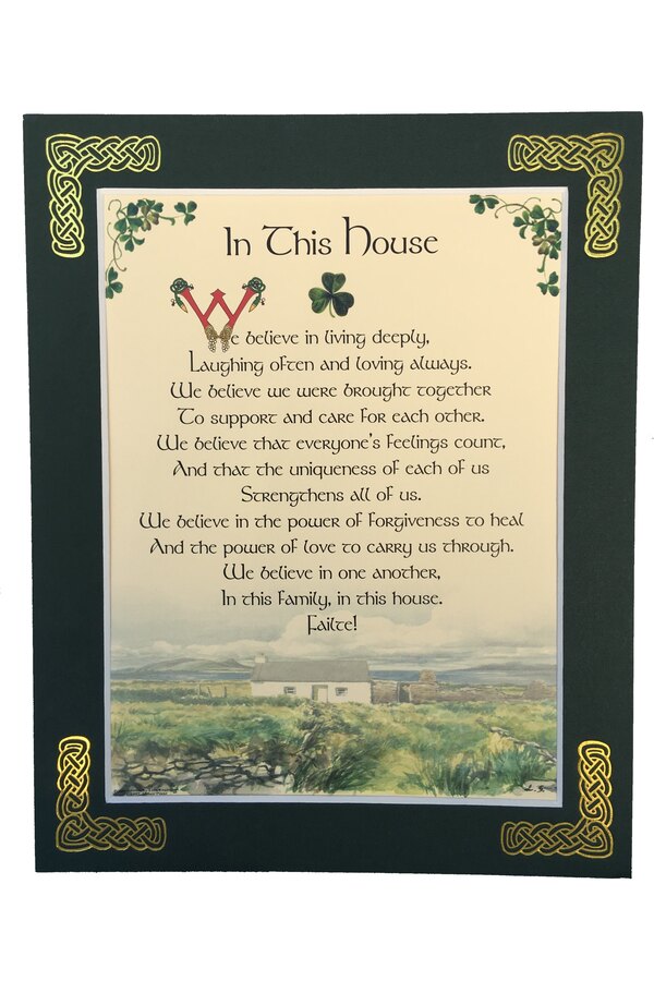 Features - Our blessings are printed on ivory card and are presented in a forest green matting with gold Celtic knots embossed on the corners. Presented in a clear with a craft card backing in a resealable bag.