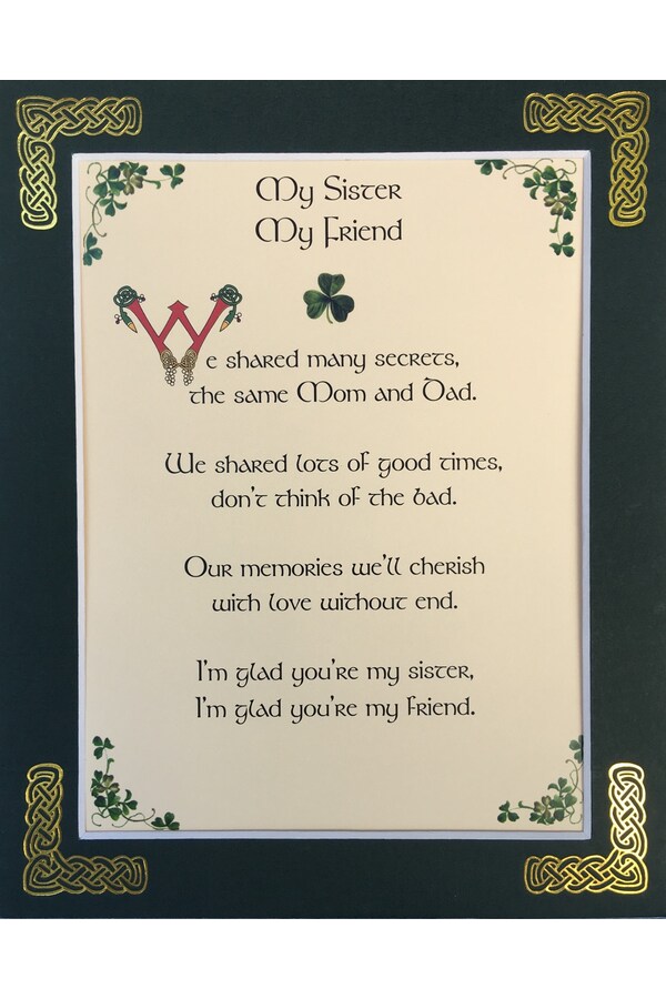 Features - Our blessings are printed on ivory card and are presented in a forest green matting with gold Celtic knots embossed on the corners. Presented in a clear with a craft card backing in a resealable bag.
