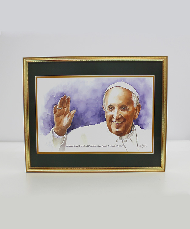 This 16"x20" watercolor print comes in a gold gilt wood frame behind plexiglass and has a wall hanging hook for easy display. The green over gold matting is printed directly on to the print. The ornate detail and high quality wrap of this solid wood frame showcase a rich gold finish. High-quality printing gives this fine art print its vivid and sharp appearance. Produced on heavy weight cover stock, this art reproduction is coated with a silken finish that protects the inks and creates an elegant look.