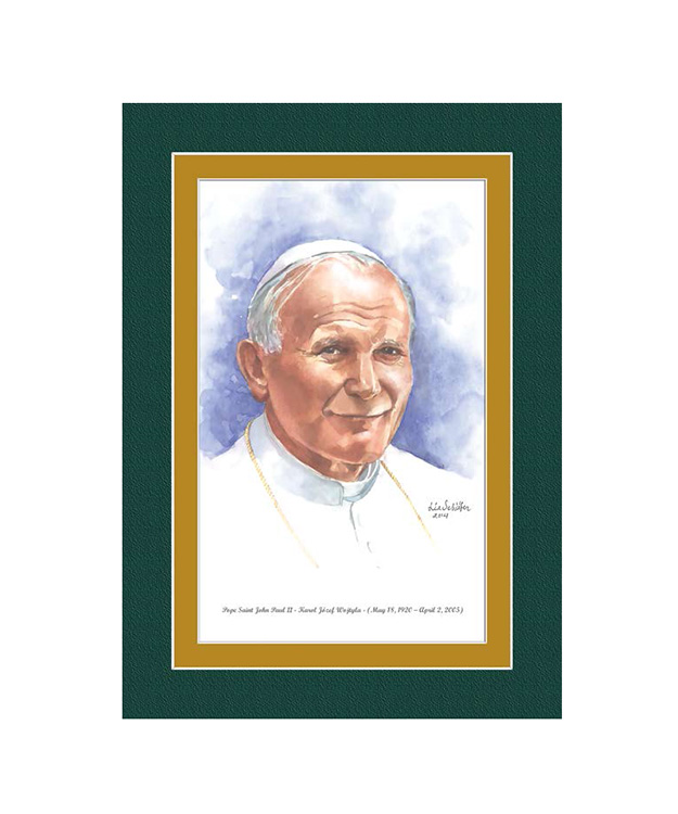 This 5"x7" watercolor print has a green over gold matting which is printed directly on to the print. The print is presented in a crystal clear bag with a backing board. The artist resume is on the back.