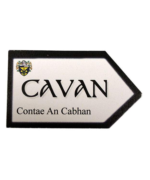 Cavan County Road Sign Magnet - with Gaelic translation & County Coat of Arms - Individually packaged in hanging display bag.