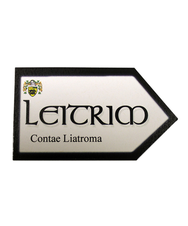 Leitrim County Road Sign Magnet - with Gaelic translation & County Coat of Arms - Individually packaged in hanging display bag.