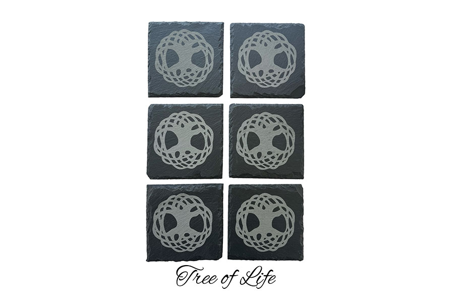 4"x4" Laser Engraved Slate Coaster - Tree of Life