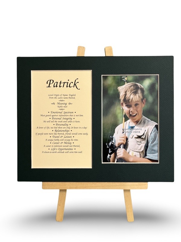 This beautiful, matted print displayed in a forest green matt is printed on an ivory card stock, text includes the local origin of the name, meaning, emotional spectrum, personal integrity, personality, relationships, travel & leisure, career & money, life's opportunities, played in a resealable display bag with a backing board. Add a favorite 4" x 6" photograph to create a cherished keepsake. Each name meaning print has its name and number secured to the corner with a sticker, names have an A-Z dividers for easy searching of a specific name. We also take special orders for those hard to find names. Any name any spelling.