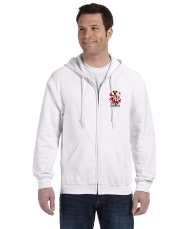 Our Coat of Arms Full-Zip Hooded Sweatshirt is printed with a historical full-color coat of arms. Available in ash grey. Please specify last name. 100% cotton. Sizes: S (34-36), M (38-40), L (42-44), XL (46-48). Shipped separately - please allow 2-4 weeks for delivery.