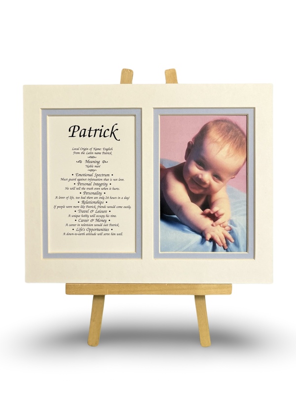 This beautiful, double matted print includes a profile of the meaning of any first name (origin, personality traits, and more.) Add a favorite 4 x 6" photograph to create a cherished keepsake. Fits 8x10 frame not included. USA. Please state name. Shipped separately; allow 2-4 weeks
