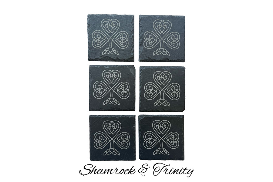 4"x4" Laser Engraved Slate Coaster - Trinity & Shamrock