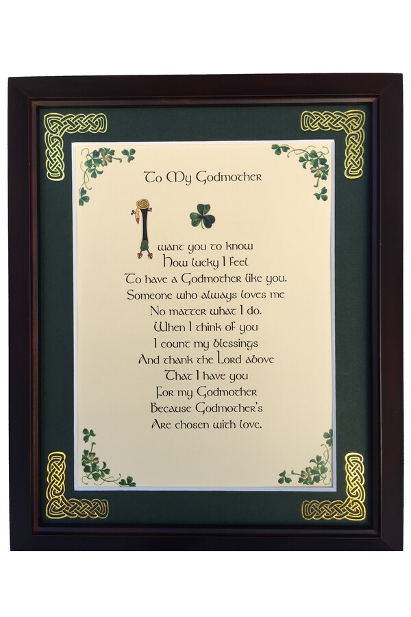 Features - Our blessings are printed on ivory card, and are presented in a forest green matting with gold Celtic knots embossed on the corners. Set behind glass and displayed in a elegant dark walnut frame of Italian design. The backing has a hanger and an attached easel to allow for both wall and tabletop display. Each frame comes individually boxed in a bubble wrap sleeve.
