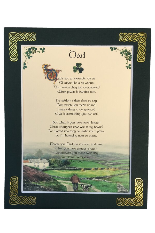 Features - Our blessings are printed on ivory card and are presented in a forest green matting with gold Celtic knots embossed on the corners. Presented in a clear with a craft card backing in a resealable bag.