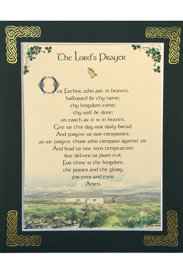 Features - Our blessings are printed on ivory card and are presented in a forest green matting with gold Celtic knots embossed on the corners. Presented in a clear with a craft card backing in a resealable bag.