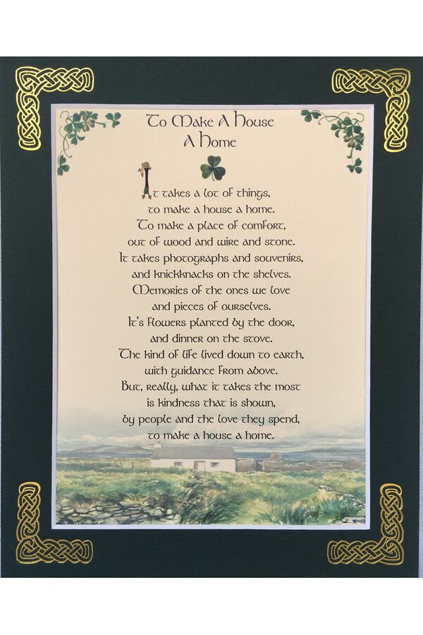 Features - Our blessings are printed on ivory card and are presented in a forest green matting with gold Celtic knots embossed on the corners. Presented in a clear with a craft card backing in a resealable bag.