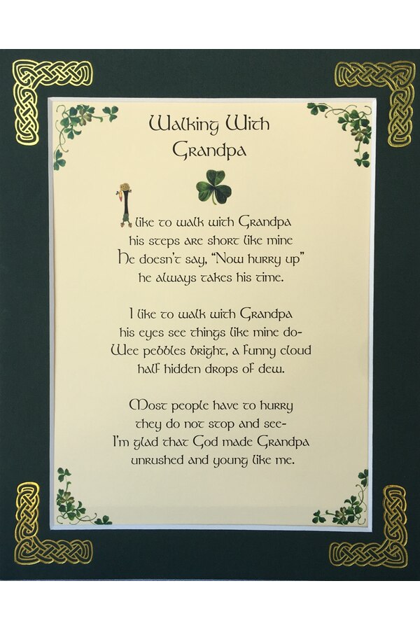 Features - Our blessings are printed on ivory card and are presented in a forest green matting with gold Celtic knots embossed on the corners. Presented in a clear with a craft card backing in a resealable bag.
