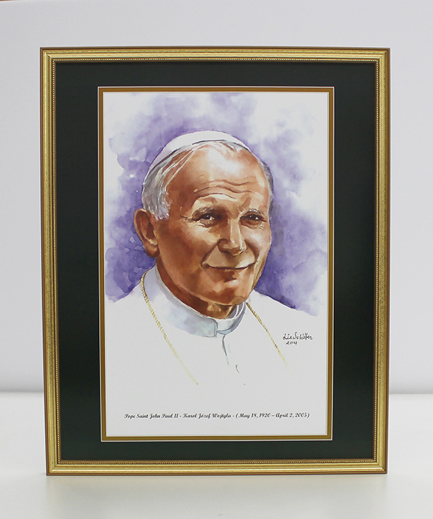 This 16"x20" watercolor print comes in a gold gilt wood frame behind plexiglass and has a wall hanging hook for easy display. The green over gold matting is printed directly on to the print. The ornate detail and high quality wrap of this solid wood frame showcase a rich gold finish. High-quality printing gives this fine art print its vivid and sharp appearance. Produced on heavy weight cover stock, this art reproduction is coated with a silken finish that protects the inks and creates an elegant look.