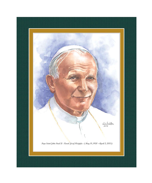 This 8"x10" watercolor print has a green over gold matting which is printed directly on to the print. The print is presented in a crystal clear bag with a backing board. The artist resume is on the back.