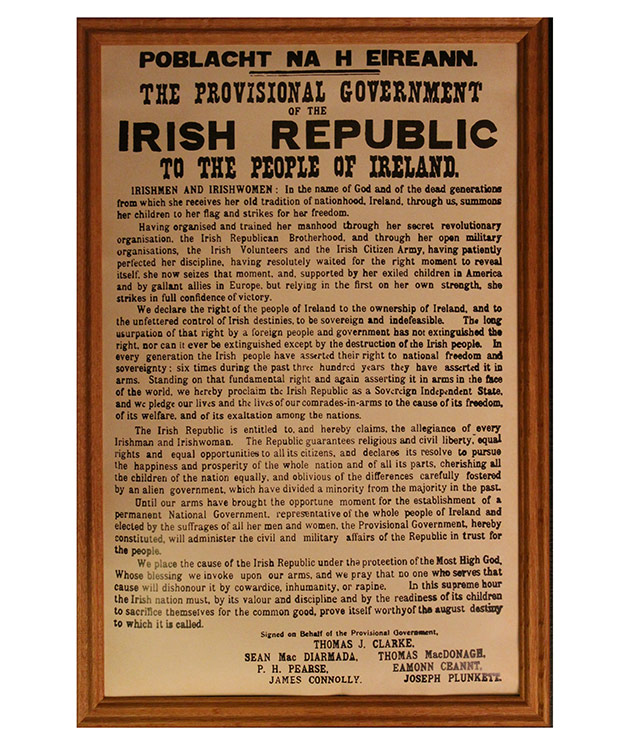 Republic (Irish: Forógra na Poblachta), also known as the 1916 Proclamation or Easter Proclamation, was a document issued by the Irish Volunteers and Irish Citizen Army during the Easter Rising in Ireland, which began on 24 April 1916. In it, the Military Council of the Irish Republican Brotherhood, styling itself the "Provisional Government of the Irish Republic", proclaimed Ireland's independence from the United Kingdom. The reading of the proclamation by Patrick Pearse outside the General Post Office (GPO) on Sackville Street (now called O'Connell Street), Dublin's main thoroughfare, marked the beginning of the Rising. The proclamation was modeled on a similar independence proclamation issued during the 1803 rebellion by Robert Emmet.