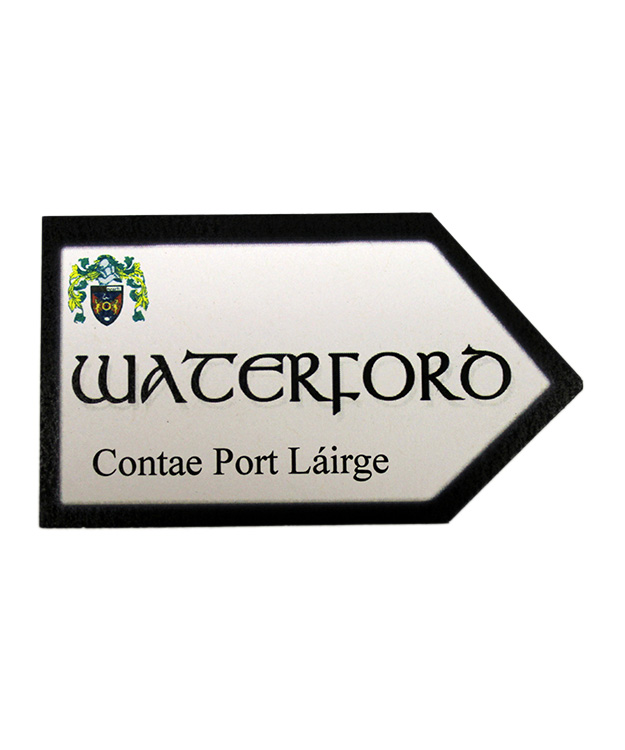 Waterford County Road Sign Magnet - with Gaelic translation & County Coat of Arms - Individually packaged in hanging display bag.