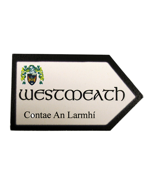 Westmeath County Road Sign Magnet - with Gaelic translation & County Coat of Arms - Individually packaged in hanging display bag.