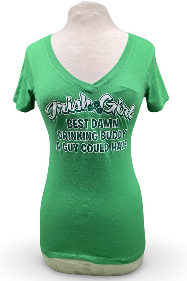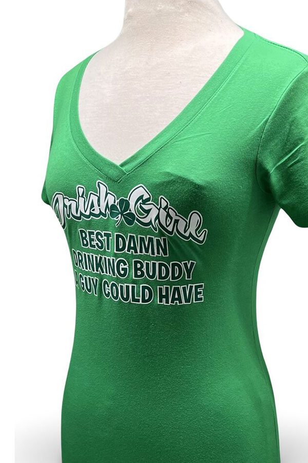 Irish Girl - Best Damn Drinking Buddy a Guy Could Have - V Neck Kelly Green T-Shirt