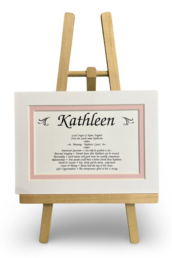 This beautiful, matted print displayed in a white over pink matt is printed on a white card stock, text includes the local origin of the name, meaning, emotional spectrum, personal integrity, personality, relationships, travel & leisure, career & money, life's opportunities, played in a resealable display bag. Each name meaning print has its name and number secured to the corner with a sticker, names have an A-Z dividers for easy searching of a specific name. We also take special orders for those hard to find names. We can make and send you any name with any spelling..