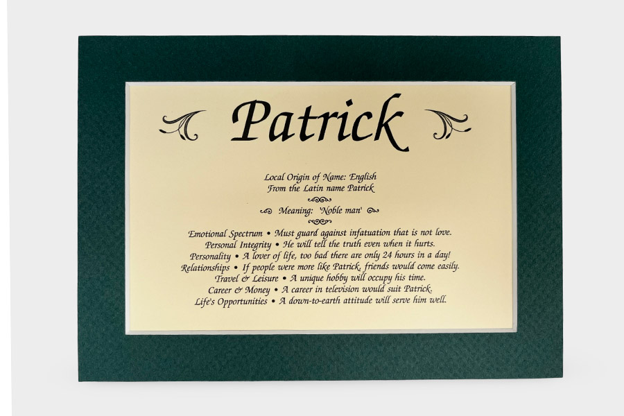 This beautiful, matted print displayed in a forest green matt is printed on an ivory card stock, text includes the local origin of the name, meaning, emotional spectrum, personal integrity, personality, relationships, travel & leisure, career & money, life's opportunities, played in a resealable display bag with a backing board. Each name meaning print has its name and number secured to the corner with a sticker, names have an A-Z dividers for easy searching of a specific name. We also take special orders for those hard to find names. Any name any spelling.
